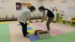 今回のStepUPの活動では、「協力」と「力加減」をテーマに、ペアになった職員と一緒にチャレンジしました!