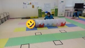 | トンネルくぐり→ | 背中をぶつけずに進む→ | 身体の動かし方の工夫 |