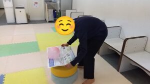 今回の活動は【🎈風船運び】。新聞紙の上に風船を乗せ、1人・2人と人数を変えたり、風船の個数を増やすことで難易度を調整しました。