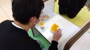 事業所に戻った後は、自分だけのオリジナルパフェ作り。