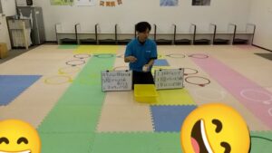 箱の中に入っている道具を“目隠しで触って当てる”というチャレンジです。普段は使わないものも登場し、子ども達の表情は✨ワクワク✨でいっぱいでした。